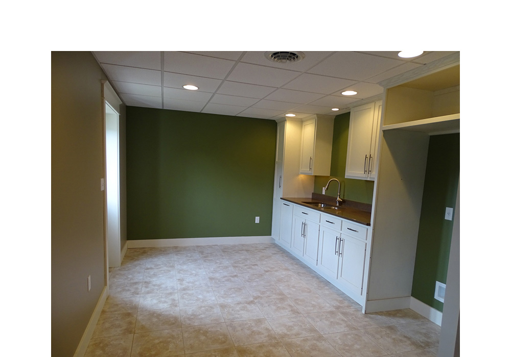 Client asked to convert his dark and dingy over cluttered basement to a retreat style space for his mom.  Space was designed using CAP (Certified Aging in Place) methods for now and if needed in the future; for instance a reinforced stairwell and 60 degree turning radius’s.  Mom loves her new home and couldn’t be more pleased with the outcome from the super graded sub floor to the ceiling tiles.